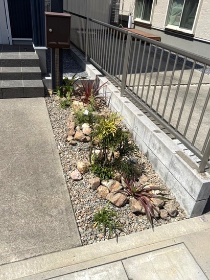 余談ですが、ずっと気になっていた我が家の玄関前の植栽。